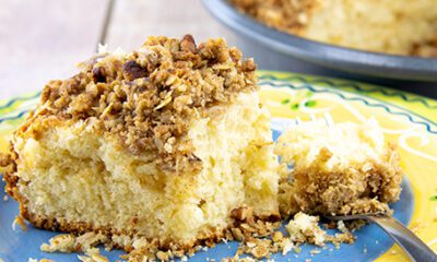 This content features a recipe for Cinnamon-Pecan Streusel Coffee Cake, characterized by its mild sweetness and crunchy topping. Served warm with ice cream or powdered sugar, it combines oats, flour, brown sugar, pecans, and cream cheese. Additional resources for recipes and food-related content are available on Culinary.net and STM Daily News.